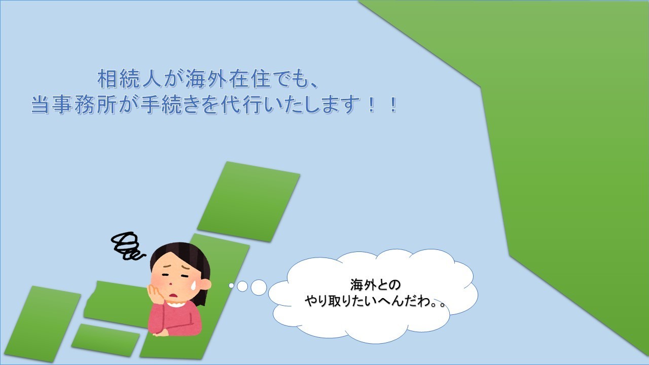 相続人の一部が海外在住で日本に住んでいない場合の相続人などとのやりとりも全てお任せください。相続に関して丁寧に説明し円滑な相続手続きができるようサポートします。